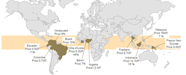 Even without biodiesel, demand for palm oil would still be driven by the food segment. In Europe , there is less rapeseed for food purposes as more rapeseed are being used as feedstock for biofuel. Palm oil can come in to fill in the gap left by rapeseed in the food segment. In terms of production volume, palm oil is the world's second most produced vegetable oil after soybean oil. Palm oil exports come predominantly from Malaysia and Indonesia and these two countries can be expected to maintain their dominant position in exports of oils and fats, accounting for 45% of total trade.